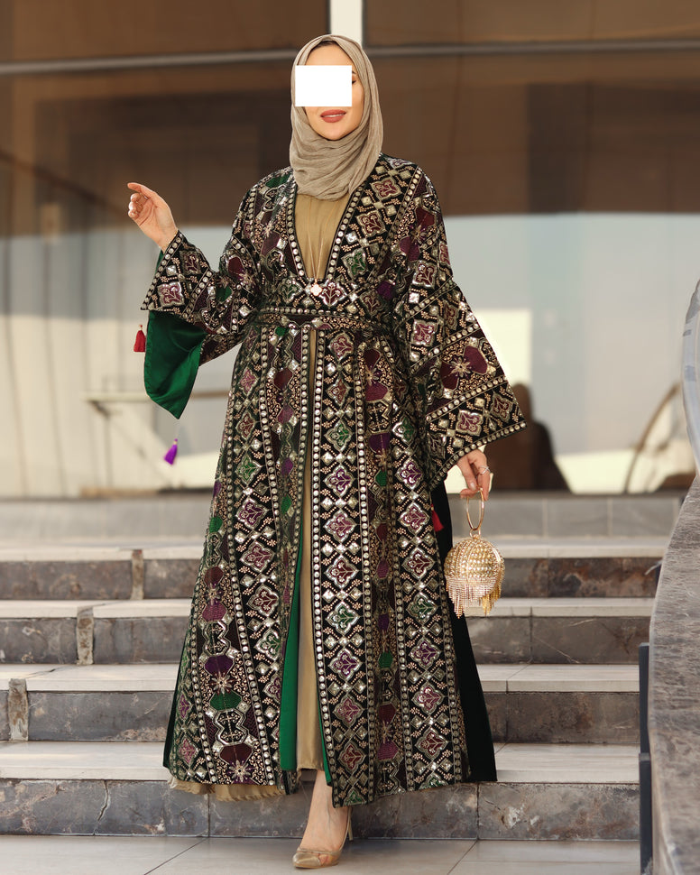 درّاعة مخمل مطرّزة – مزيج زمردي